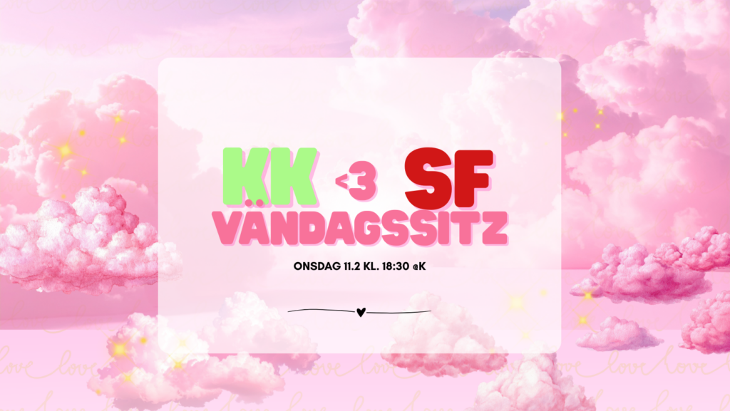 Sitzen har temat Valentines, så ta på dig någonting kärleksfullt och kom med och fira alla hjärtans dag i den bästa sällskapen! Det finns 25 platser per förening och denna anmälan gäller endast SF:are. Dörrarna öppnar 18.30 och helan går 19.00. Hoppas vi ses där!