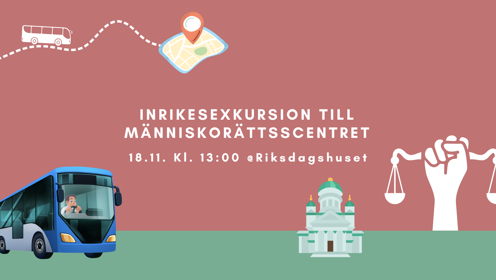 Det har blivit dags för den årliga INRIKESEXKURSIONEN! Det här året får vi möjligheten att besöka Människorättscentret. Människorättscentret finns i riksdagshuset i Helsingfors och arbetar med att följa upp och främja mänskliga rättigheter i Finland. Under besöket kommer vi att få bekanta oss med Människorättscentrets verksamhet och organisation.