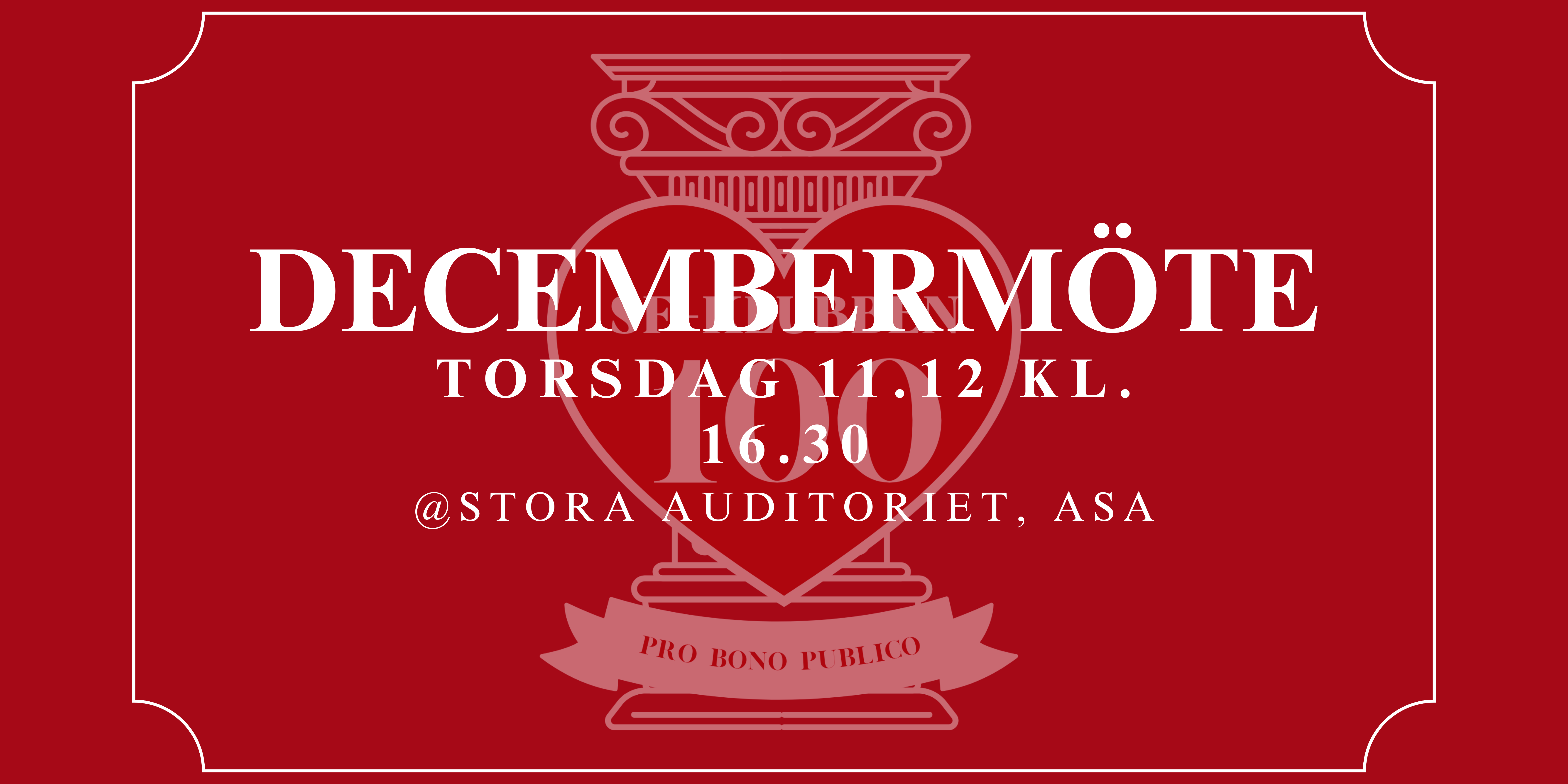 Det är dags för decembermötet, med många mötespunkter och (förhoppningsvis) många spännande val. OBS! Mötet börjar redan 16.30, i stället för 17.30 som vanligt, eftersom det kan bli ett långt möte. Under mötet väljer vi alltså styrelsen samt redaktionerna inför 2026, medlemmarna i nästa års förvaltningsråd presenteras, två arbetsgrupper inför nästa verksamhetsår tillsätts och medlemmar till den ena arbetsgruppen väljs in.