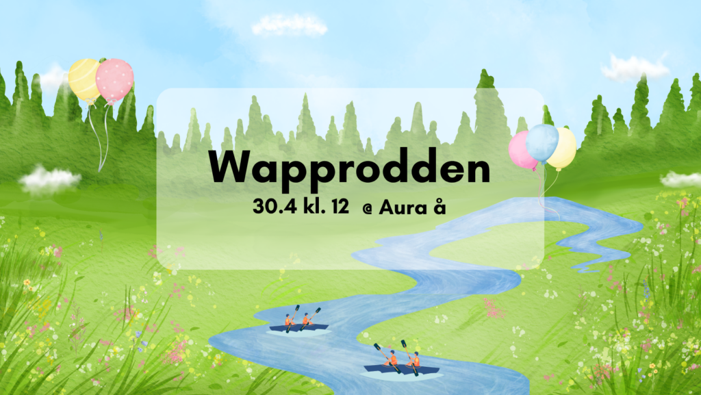 Det är dags för den traditionsenliga Wapprodden! Åbos studentföreningar tävlar mot varandra i en spännande roddtävling. Roddtävlingen sker på Aura å framför Raddison Blu hotellet! Alla som inte är med och ror får gärna söka sig till åstranden för att heja på vår förening! Till roddtävlingen behövs det nu 9 tappra roddare som tänker kamma hem vinsten! Anmäl ert intresse direkt till Julia Loo 0449717192!