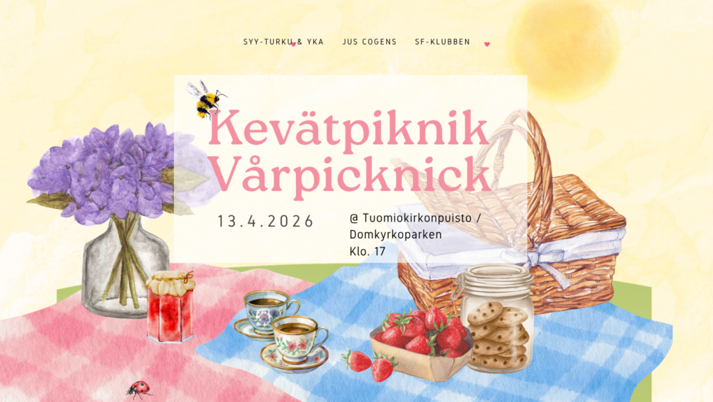 När solen börjar värma igen är det dags för vårens första picknick! Välkommen med SYY-Åbos, YKAs, Jus Cogens och SF-Klubbens vårpicknick!