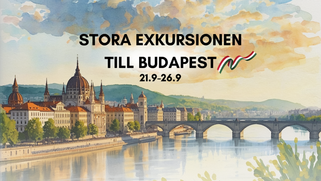Tiden är ankommen! Det är än en gång tiden att åka på SF:s stora exkursion, denna gång till Budapest, Ungern. Under exkursionen kommer vi att besöka Ungerns parlamentshus, människorättsorganisationen Hungarian Helsinki Committee och andra intressanta besöksmål. Vi besöker Budapest under en historiskt betydande tid, så ta dig chansen att delta på en oförglömlig upplevelse. Dessutom har vårt boende en ölkran. 😀